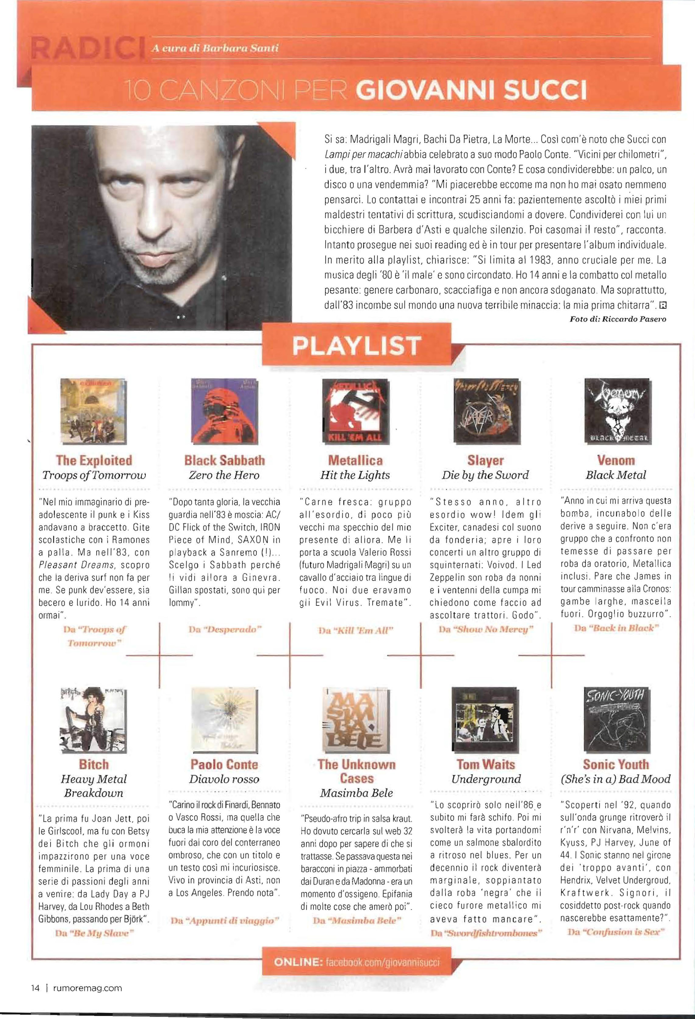 Ma soprattutto, nel 1983 incombe sulla scena del mondo una nuova terribile arma: la mia prima chitarra. Le mie radici nei fatti, non solo nelle intenzioni, sono tutte in quell’anno lì. Ecco i fatti, li ho raccontati a Barbara Santi del mensile RUMORE in edicola questo mese, che mi ha chiesto una playlist di dieci brani rappresentativa delle mie radici. Eccola qui, con possibilità di ascolto in un clic. Bei tempi.