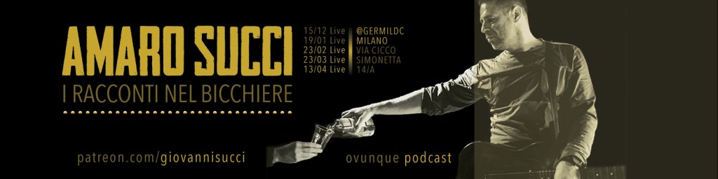 Racconti e incontri davanti a un bicchiere dai sapori forti, parole e musica originali, da degustare con calma. Sono Giovanni Succi e questo è il mio liquore portentoso, un amaro amaro davvero, il rimedio ad ogni male.